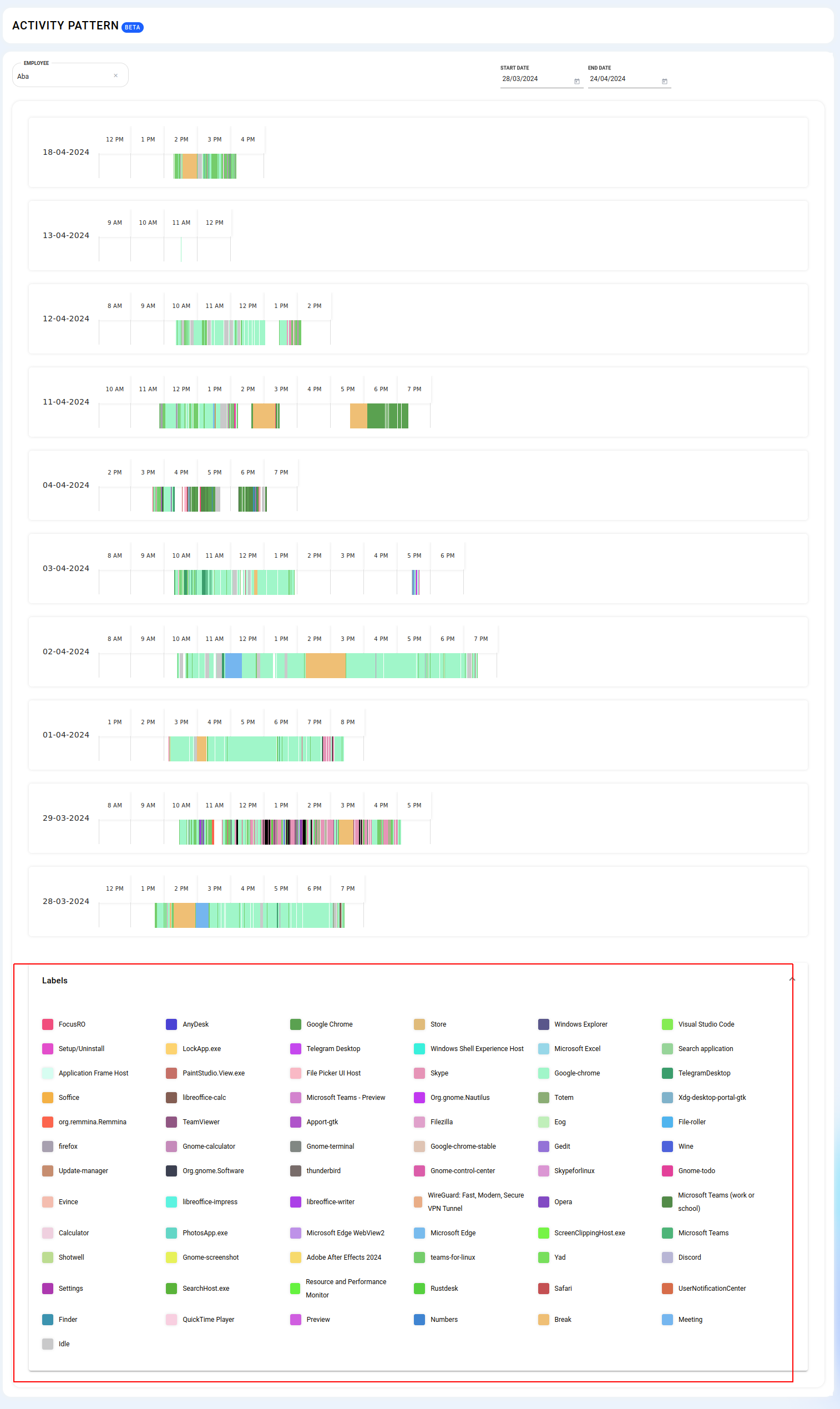 Software Usage: Analyze the software applications your employees use, including detailed information on the time spent on each application.